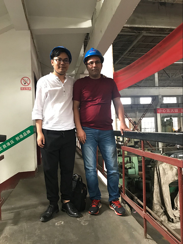 Company director of foreign trade to accompany customers to visit factory production workshop, and explain the factory production strength.